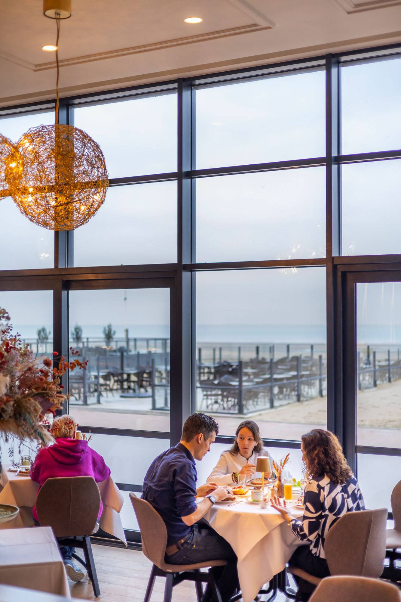 Un petit-déjeuner buffet avec vue imprenable sur la mer.